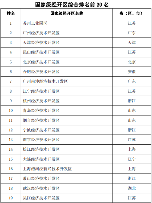 近日,商务部完成2023年国家级经开区综合发展水平考核评价工作,对全国230家国家级经开区2022年度综合发展水平情况进行考核评价。考核评价结果显示,国家级经开区作为高水平对外开放平台,积极推进经济高质量发展,在巩固外贸外资基本盘中发挥了重要作用,呈现总量扩大、质量提升、开放带动作用进一步增强的良好发展态势。