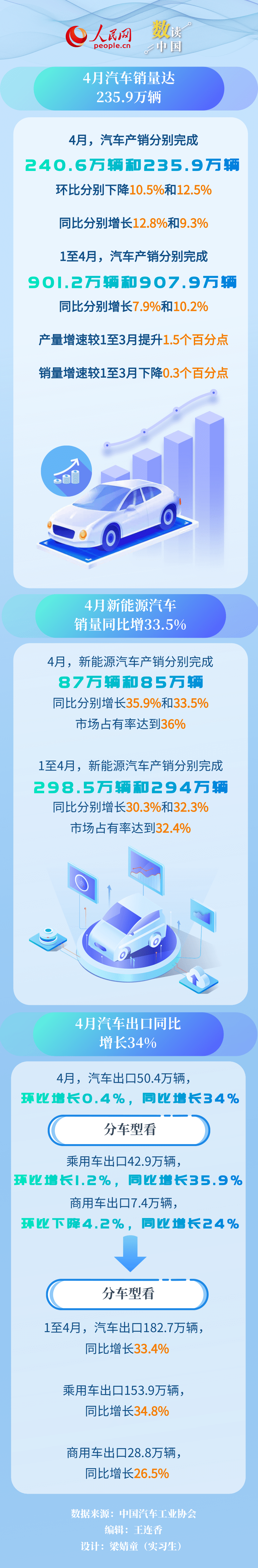 门徒平台:4月我国新能源汽车和汽车出口同比继续保持快速增长